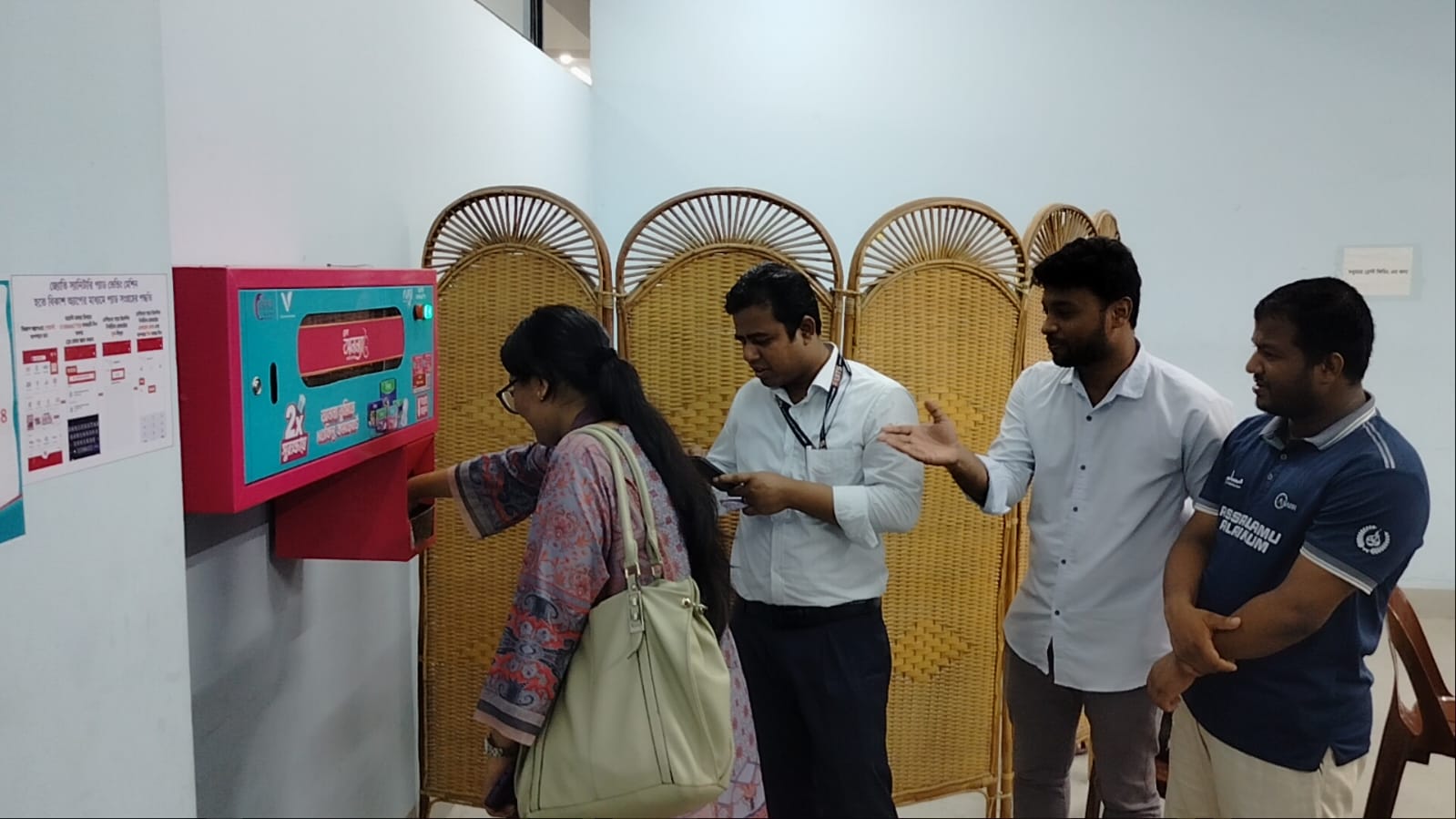 নারীদের পিরিয়ডকালীন সচেতনতা ও সুরক্ষায় “আমার রক্ষক আমি, আমিই অনন্যা” ক্যাম্পেইনের অংশ হিসেবে, ফ্রেশ অনন্যা ও এক্সিলেন্স বাংলাদেশ-এর যৌথ উদ্যোগে ইউনিভার্সিটি অব ইনফরমেশন টেকনোলজি অ্যান্ড সায়েন্সেস (ইউআইটিএস) ক্যাম্পাসে স্থাপন করা হলো স্যানিটারি ন্যাপকিন ভেন্ডিং মেশিন।