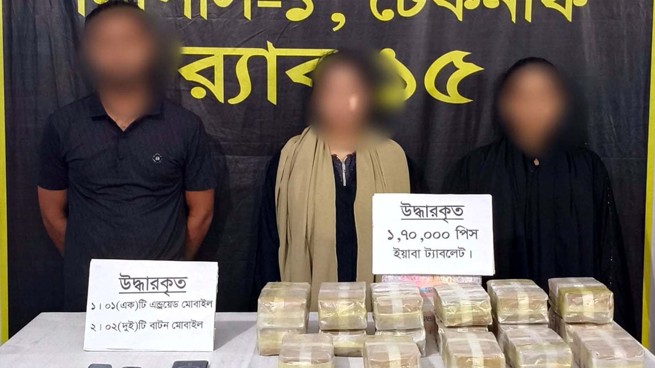 এক লাখ ৭০ হাজার পিস নিষিদ্ধ ইয়াবা ট্যাবলেটসহ ধরা পড়েছেন দুই নারীসহ তিনজন মাদক পাচারকারী। কক্সবাজারের সীমান্ত জনপদ টেকনাফের সদর ইউনিয়নের ছোট হাবির পাড়া এলাকা থেকে তাদের গ্রেপ্তার করে র্যাপিড অ্যাকশন ব্যাটালিয়ন (র্যাব-১৫)।