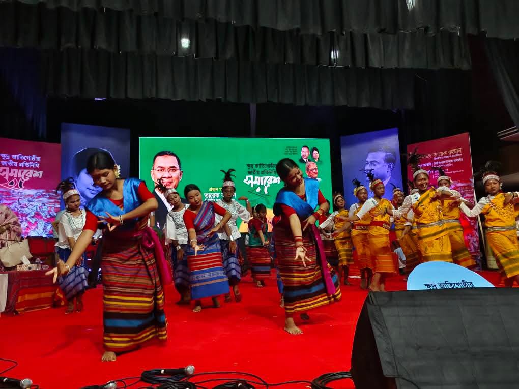 জাতীয়তাবাদী ক্ষুদ্র জাতিগোষ্ঠী দলের আয়োজনে সেখানে উপস্থিত হয়েছেন বিএনপির মহাসচিব মির্জা ফখরুল ইসলাম আলমগীর। অনুষ্ঠানে ভার্চ্যুয়ালি যুক্ত হয়ে দলটির ভারপ্রাপ্ত চেয়ারম্যান তারেক রহমান বক্তব্য দেন।