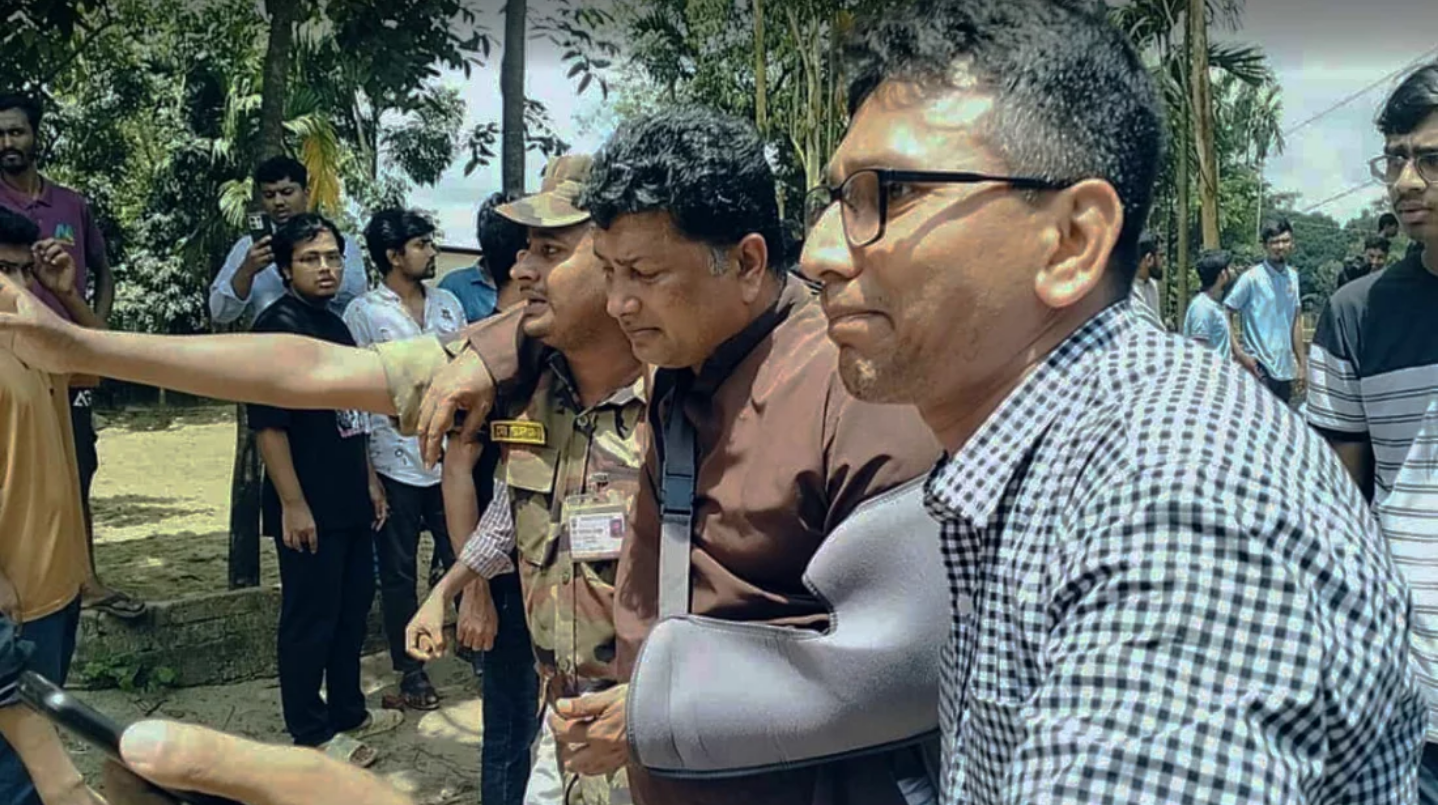 ঘটনাস্থলে গিয়ে দেখা যায়, বেলা সাড়ে ১১টার দিকে এক প্রান্তে কয়েক শ শিক্ষার্থী অবস্থান নেন। বিপরীত দিকে ছিলেন এলাকাবাসী। দুই পক্ষই পাল্টাপাল্টি স্লোগান দিতে থাকেন। এ সময় সহ-উপাচার্য (একাডেমিক) অধ্যাপক মোহাম্মদ শামীম উদ্দিন খান, মো. কামাল উদ্দিন, প্রক্টর তানভীর মোহাম্মদ হায়দার আরিফসহ শিক্ষকেরা দুই পক্ষকে বোঝানোর চেষ্টা করেন। একপর্যায়ে দুই পক্ষের মধ্যে ইটপাটকেল নিক্ষেপ শুরু হয়। ইটের আঘাতে আহত অবস্থায় অন্তত ১০ শিক্ষার্থীকে ক্যাম্পাসের দিকে নিয়ে যেতে দেখা যায়। তাঁদের মাথা থেকে রক্ত ঝরছিল। তবে ঘটনাস্থলে আইনশৃঙ্খলা রক্ষাকারী বাহিনীর কাউকে দেখা যায়নি।