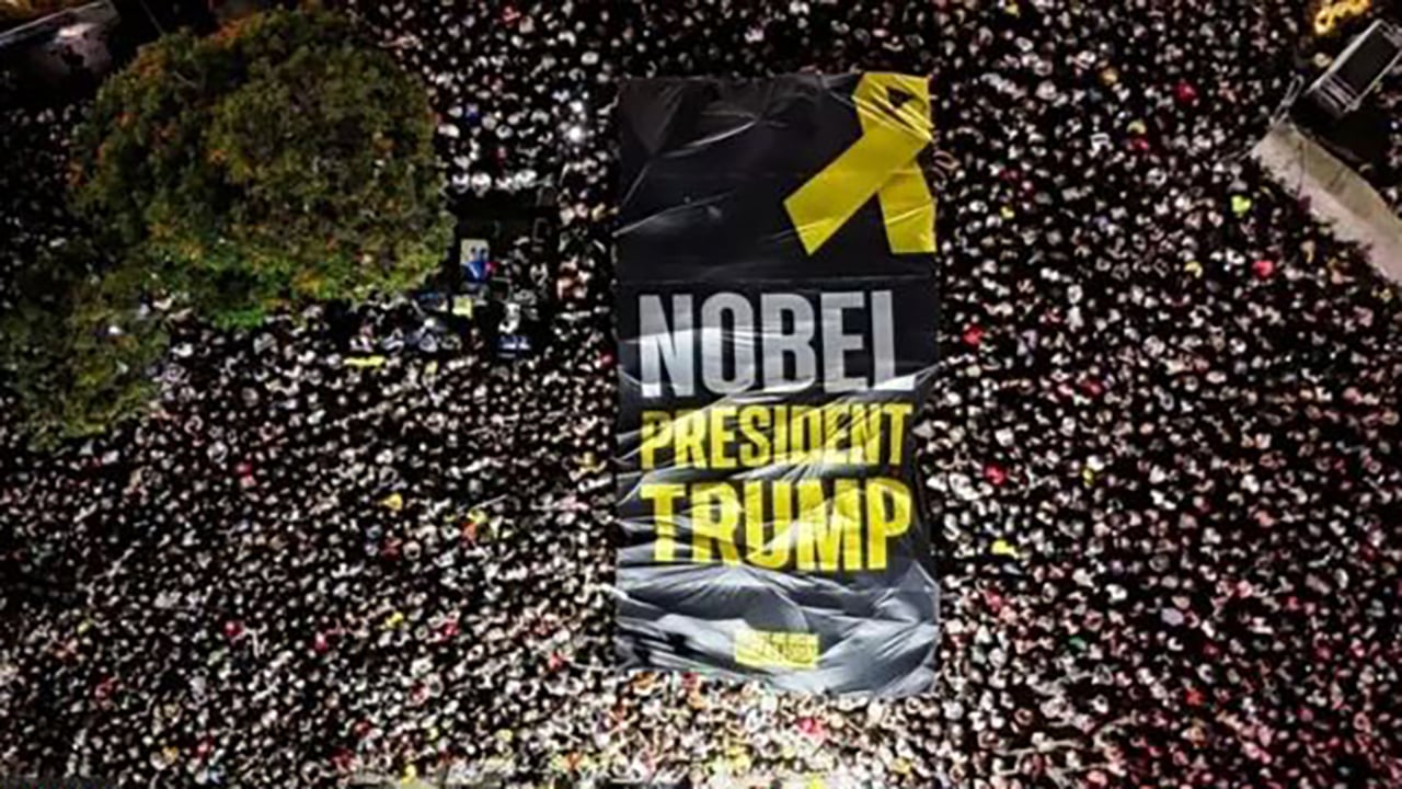 হামাসের কাছে বন্দি ইসরাইলি জিম্মিদের সম্ভাব্য মুক্তির আগে তেলআবিবে এক সমাবেশে অংশ নিয়েছে লাখ লাখ মানুষ। সেখানে ট্রাম্পের বিশেষ দূত স্টিভ উইটকফ গাজায় যুদ্ধবিরতি ও জিম্মিদের ফেরানোর বিষয়টি সম্ভব করে তোলায় ট্রাম্পের প্রশংসা করেন। সমাবেশে ট্রাম্পের মেয়ে ইভাঙ্কা ও জামাতা জ্যারেড কুশনার বক্তব্য রাখেন।