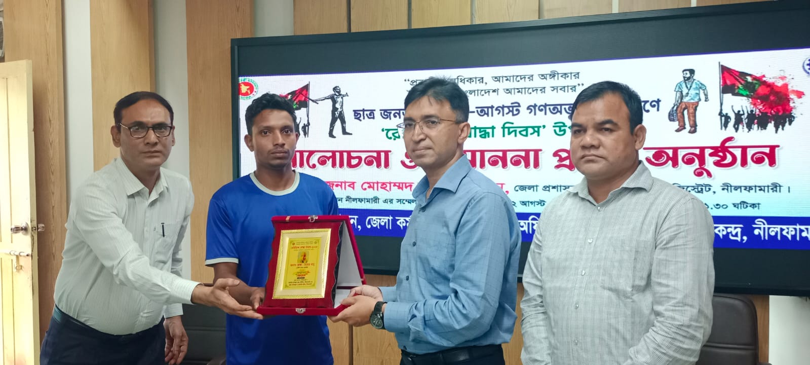 শনিবার দুপুরে(২আগস্ট) জেলা প্রশাসক কার্যালয়ের সভাকক্ষে সম্মাননা ক্রেস্ট তুলে দেন জেলা প্রশাসক মোহাম্মদ নায়িরুজ্জামান।