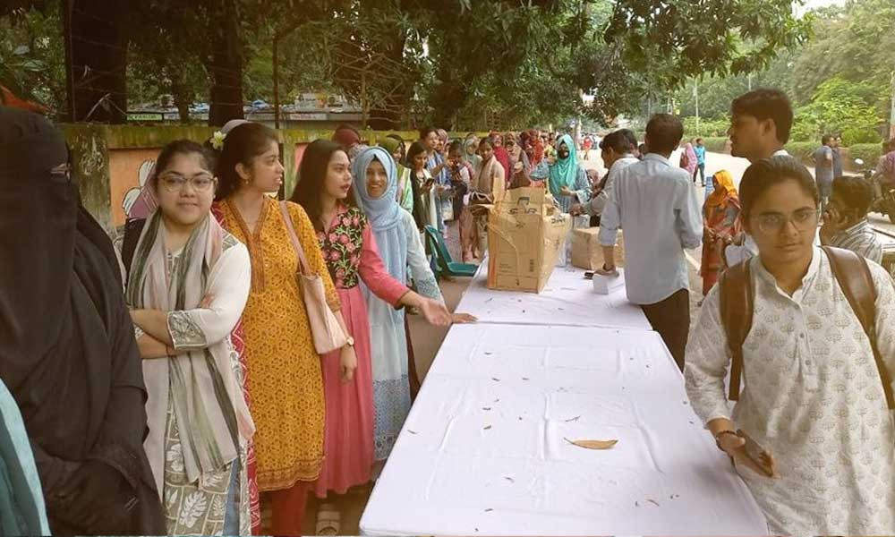 ছাত্র-শিক্ষক কেন্দ্রে (টিএসসি) ভোট দেবেন রোকেয়া হলের শিক্ষার্থীরা। টিএসসি কেন্দ্রে মোট ভোটার সংখ্যা ৫ হাজার ৬৬৫ জন।