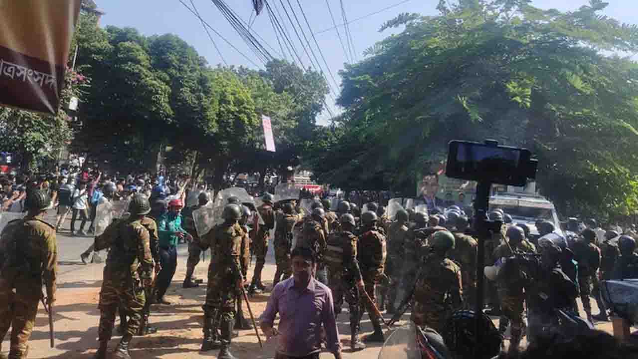 পরিস্থিতি নিয়ন্ত্রণে আনতে পুলিশ টিয়ারশেল নিক্ষেপ করে। সংঘর্ষে দুই পুলিশ সদস্যসহ বেশ কয়েকজন ছাত্র-জনতা আহত হয়েছেন।
