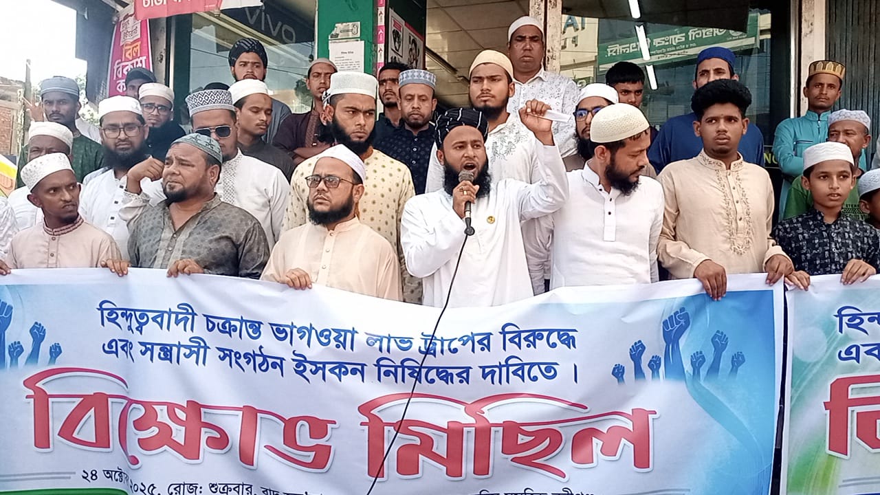 বিক্ষোভে অংশগ্রহণকারীরা ইসকনকে ‘উগ্র হিন্দুত্ববাদী ও সন্ত্রাসী সংগঠন’ হিসেবে উল্লেখ করে দ্রুত নিষিদ্ধ করার দাবি জানান। তারা বলেন, দেশের শান্তি ও সাম্প্রদায়িক সম্প্রীতি রক্ষার স্বার্থে ইসকনের কার্যক্রম বন্ধ করা প্রয়োজন।