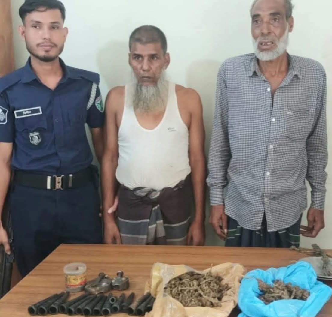 আটক ব্যক্তিরা হলেন- আউশকান্দি ইউনিয়নের চৈতন্য জালালপুর গ্রামের মৃত নুরুল ইসলামের ছেলে বুরহান উদ্দিন শেখ (৭০) এবং একই ইউনিয়নের মহাসড়কের পাশের ভূমিহীন পাড়ার মৃত রফিক উদ্দিনের ছেলে মোশাহিদ উদ্দিন মশন (৬৫)।