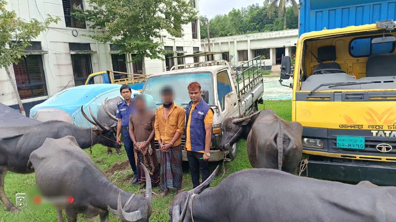 পুলিশ জানায়, জব্দকৃত পশুগুলোর মধ্যে বড় আকৃতির কালো রঙের পাঁচটি গাভী মহিষ রয়েছে। এসব মহিষের আনুমানিক বাজারমূল্য প্রায় ছয় লাখ টাকা। এছাড়া টয়োটা কোম্পানির সাদা রঙের একটি পিকআপ (রেজিঃঢাকা মেট্রো-ঠ-১১-১৯৪১) জব্দ করা হয়েছে। পিকআপটির ইঞ্জিন ও চেসিস নম্বর অস্পষ্ট এবং এর আনুমানিক মূল্য সাত লাখ টাকা।