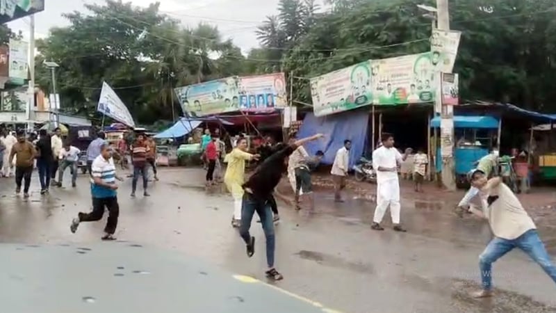তখন সমাবেশস্থল লক্ষ্য করে পার্শ্ববর্তী জেলা পরিষদের মার্কেট থেকে বেশ কয়েকটি ইটপাটকেল ছোঁড়ার পর উত্তেজনা ছড়িয়ে পড়ে। এর পর শুরু হয় উভয় পক্ষের মধ্যে পাল্টাপাল্টি ধাওয়া।
