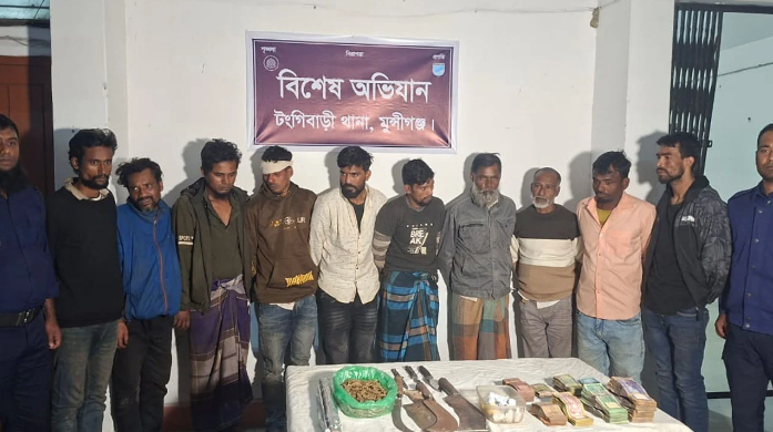 শুভ সরকার (৩০), মো. শিপন বেপারী (২৮), মিঠু মাতবর (৩০), জাহিদুল ইসলাম ফকির (৪৮), মিলন শেখ (৩৬), মো. জায়েদ আলী বয়াতী (৩৩), আহম্মদ আলী শেখ (৩৫), মুশিদুল মিয়া (২৭), মো. আব্দুল রহমান মোল্লা (৫৯) এবং মো. মোশারফ খান (২৫)। তারা টংগিবাড়ীসহ আশপাশের এলাকার চিহ্নিত মাদক ব্যবসায়ী বলে জানিয়েছে আইনশৃঙ্খলা বাহিনী।