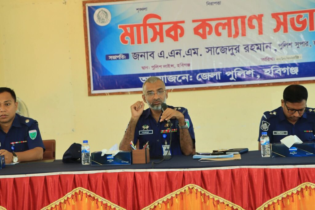 হবিগঞ্জে জেলা পুলিশের মাসিক কল্যাণ সভা ও অপরাধ পর্যালোচনা সভা অনুষ্ঠিত হয়েছে। সোমবার (২০ অক্টোবর) সকাল ১০টায় জেলা পুলিশলাইনস্থ ড্রিল সেডে অনুষ্ঠিত কল্যাণ সভার সভাপতিত্ব করেন জেলা পুলিশ সুপার এ এন এম সাজেদুর রহমান।