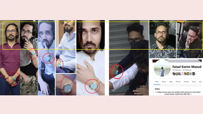 বিশেষভাবে উল্লেখযোগ্য হচ্ছে, গুলি করা ব্যক্তির বাম হাতে থাকা বিশেষ ডিজাইনের ঘড়িটির সঙ্গে একই ডিজাইনের ঘড়ি পরা একাধিক ছবি ফয়সাল করিম মাসুদের ইনস্টাগ্রাম এবং ফেসবুক প্রোফাইলে পাওয়া গেছে।