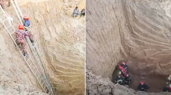 ফায়ার সার্ভিসের পাঁচটি ইউনিট ঘটনাস্থলে উদ্ধার তৎপরতার প্রাথমিক ধাপ পেরিয়ে এক্সাভেটর দিয়ে মাটি সরানো ছাড়া শিশু সাজিদকে উদ্ধার সম্ভব হচ্ছিল না।