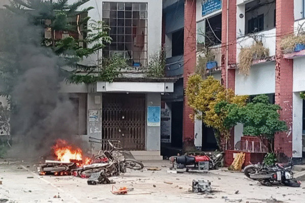 ভাঙ্গা থানা ও উপজেলা পরিষদে হামলা, মোটরসাইকেলে আগুন-কক্ষ ভাঙচুর