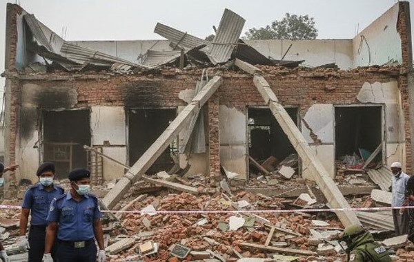 গণমঞ্চ নিউজ ডেস্ক – ঢাকার দক্ষিণ কেরানীগঞ্জের হাসনাবাদ এলাকার উন্মুল কুরআন ইন্টারন্যাশনাল মাদ্রাসার ভবনে বিস্ফোরণের ঘটনায় এখন পর্যন্ত তিনজনকে হেফাজতে নিয়েছে পুলিশ। তারা হলেন-মাদ্রাসার পরিচালক আল-আমিনের স্ত্রী আছিয়া, তার বড় ভাইয়ের স্ত্রী ইয়াসমিন আক্তার এবং আসমানি খাতুন। তাদেরকে গ্রেপ্তার দেখানোর কার্যক্রম চলছে। শনিবার বিকালে এক সংবাদ সম্মেলনে এ তথ্য নিশ্চিত করেছেন ঢাকা জেলার পুলিশ সুপার মো. মিজানুর রহমান। তিনি বলেন, ওখানে বেশ কিছু রাসায়নিক দ্রব্য মজুত ছিল।ঘটনাস্থল থেকে আরও কিছু বিস্ফোরক জাতীয় বস্তু উদ্ধার করা হয়েছে।তাৎক্ষণিক পুলিশের বোম্ব ডিস্পোজাল ইউনিট, অ্যান্টি টেরোরিজম ইউনিট এবং সিআইডির ক্রাইম সিন ইউনিটকেখবর পাঠাই।ব্যাপক তল্লাশির পর ল্যাপটপ, মনিটর, রাসায়নিক মজুত, ড্রামের মধ্যে লিকুইড রাসায়নিক, চারটি ককটেল সদৃশ বস্তু জব্দ করা হয়েছে। পুলিশের প্রাথমিক তদন্তে জানা গেছে, মাদ্রাসার পরিচালনার দায়িত্বে ছিলেন আল আমিন এবং তার স্ত্রী আসিয়া।বিল্ডিংটি ভাড়া নিয়ে ২০২২ সাল থেকে মাদরাসা পরিচালনা করে আসছিলেন।চার কক্ষের দুটিতে মাদরাসার কক্ষ হিসেবে ব্যবহার করা হতো। একটিতে তারা থাকতেন, অপরটি বসার কক্ষ। বিস্ফোরণে আসিয়া এবং তার তিন সন্তান আহত হন। এরপর আল আমিন তার স্ত্রী-সন্তানদের নিয়ে আদ-দ্বীন হাসপাতালে যান। পরে উন্নত চিকিৎসার জন্য তাদের ঢাকা মেডিকেল কলেজে নেওয়া হয়।এরপর থেকেই আল আমিন পলাতক। মিজানুর রহমান বলেন, আমরা তাৎক্ষণিকভাবে পুলিশি অভিযান শুরু করি।এই অভিযানে একাধিক টিম কাজ করছে। একপর্যায়ে আমরা শেখ আল আমিনের স্ত্রী আসিয়াকে হেফাজতে নেই।পাশাপাশি আসিয়ার বড় ভাইয়ের স্ত্রীকে জিজ্ঞাসাবাদের জন্য হেফাজতে নেই।তাদের ব্যাপকভাবে জিজ্ঞাসাবাদ করা হয়।জিজ্ঞাসাবাদের তথ্যমতে, বাসাবো থেকে আসমানি খাতুন নামে একজনকে হেফাজতে নিয়েছি।বর্তমানে তিনজন হেফাজতে আছেন। তাদের গ্রেপ্তার হিসেবে দেখাচ্ছি। বিস্ফোরণের কারণ কী? আল আমিনের কোনো উগ্র সংগঠনের সঙ্গে যোগসাজশ আছে কি-না? এমন প্রশ্নের জবাবে ঢাকা জেলার পুলিশ সুপার বলেন, প্রাথমিক জিজ্ঞাসাবাদে জানা গেছে, আল আমিনের নামে ঢাকার আশেপাশে কয়েকটি মামলা আছে। আমরা তদন্ত চালু রেখেছি।জানা গেছে, দুইবার গ্রেপ্তার হয়েছিলেন, জেলেও ছিলেন।২০২৩ সালে জামিনে এসে অটোরিকশা চালিয়েছেন কিছুদিন। বর্তমানে উবার চালাতেন। তিনি আরও বলেন, ফায়ার সার্ভিস ঘটনাস্থল পরিদর্শন করেছিল। তাদের কাছ থেকে এখনো মতামত পাইনি। ওখানে যেহেতু রাসায়নিক এবং ককটেল ছিল, প্রাথমিকভাবে ধারণা করা হচ্ছে, এখানে রাসায়নিক ক্যামিকেলের রিয়েকশন অথবা যে বিস্ফোরক দ্রব্য পাওয়া গেছে, এর কোনো একটার রিয়েকশনের কারণে প্রকাণ্ড বিস