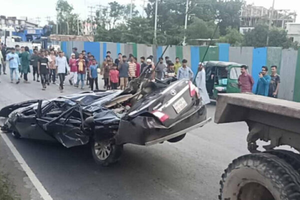 প্রাইভেটকারের ওপর সিমেন্টবোঝাই লরি উল্টে একই পরিবারের চারজন নিহত